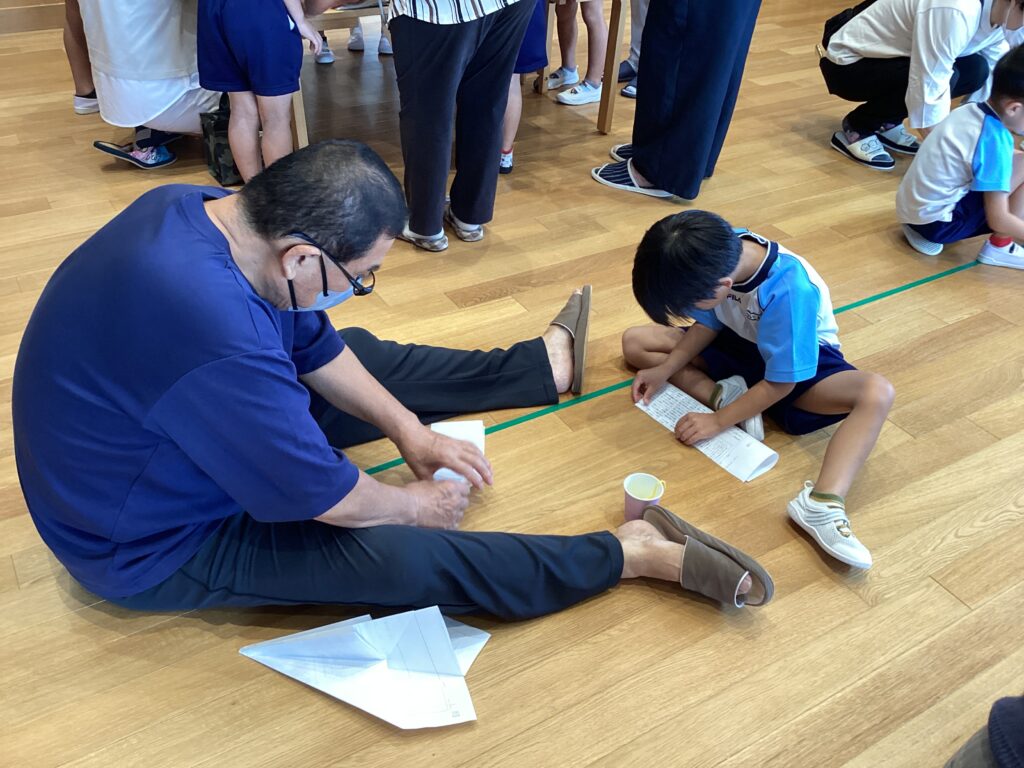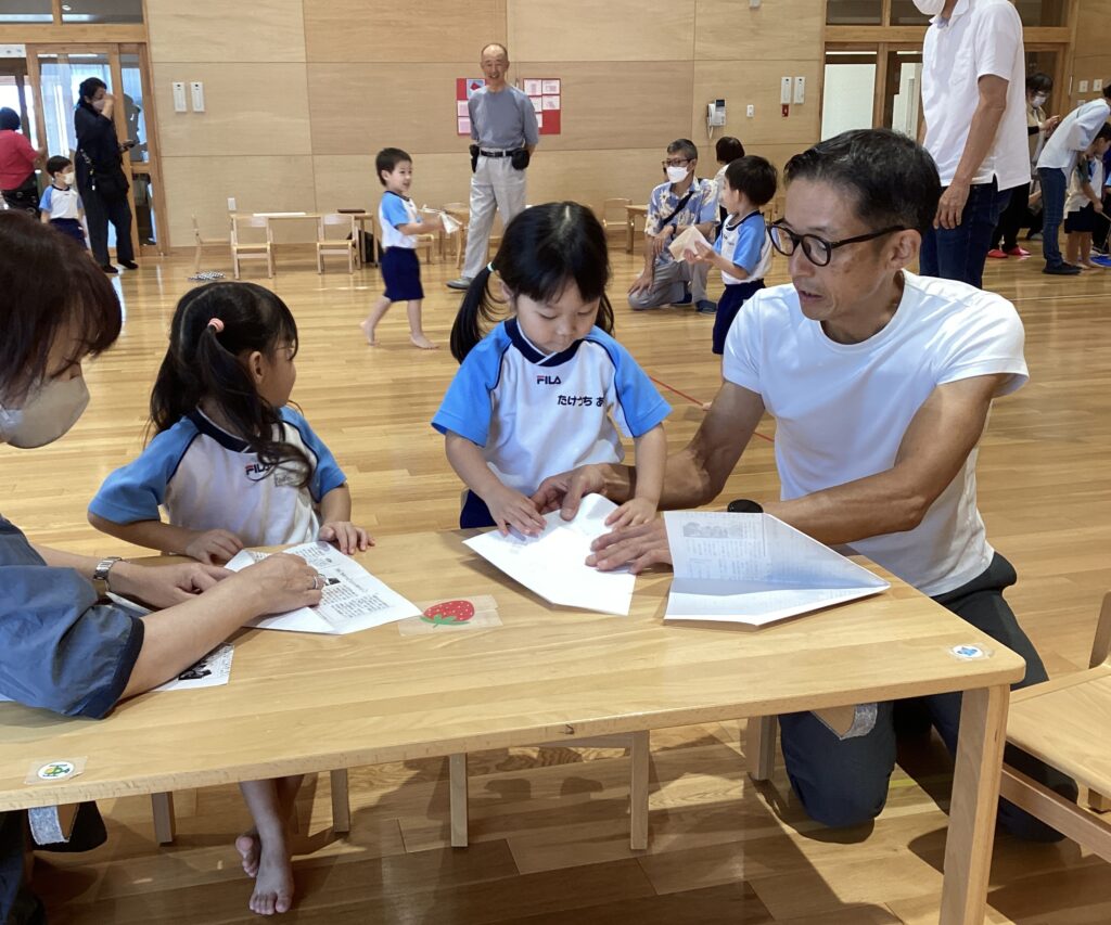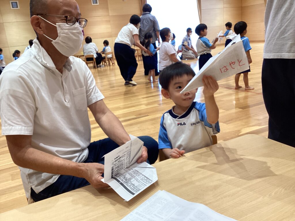 折り紙遊び、紙でっぽう作り、紙飛行機