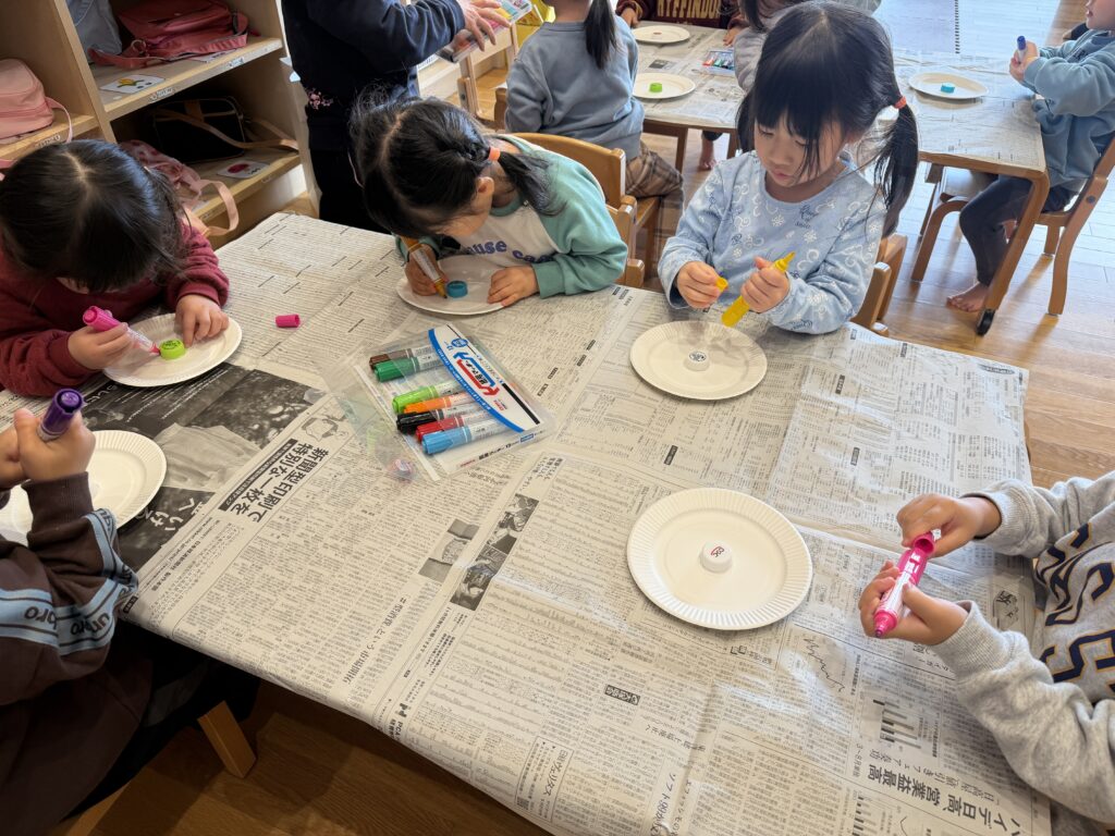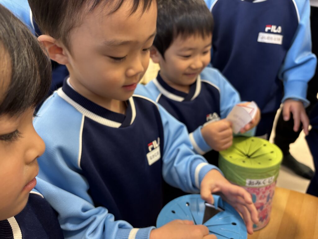 小さいクラスのお友だちも、コマを作ったり、福笑いを楽しみました。