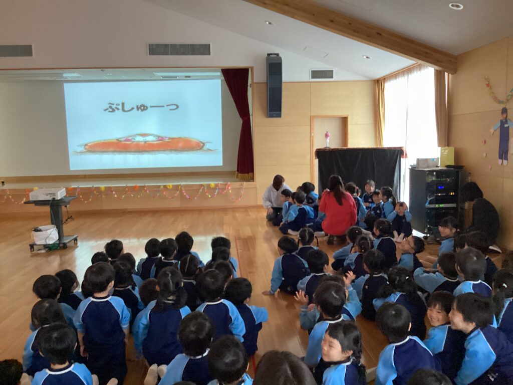 「だるまさんが」の絵本は大好きな絵本なので、子供達も大喜びでした。