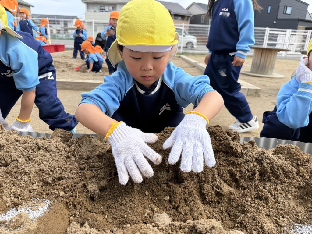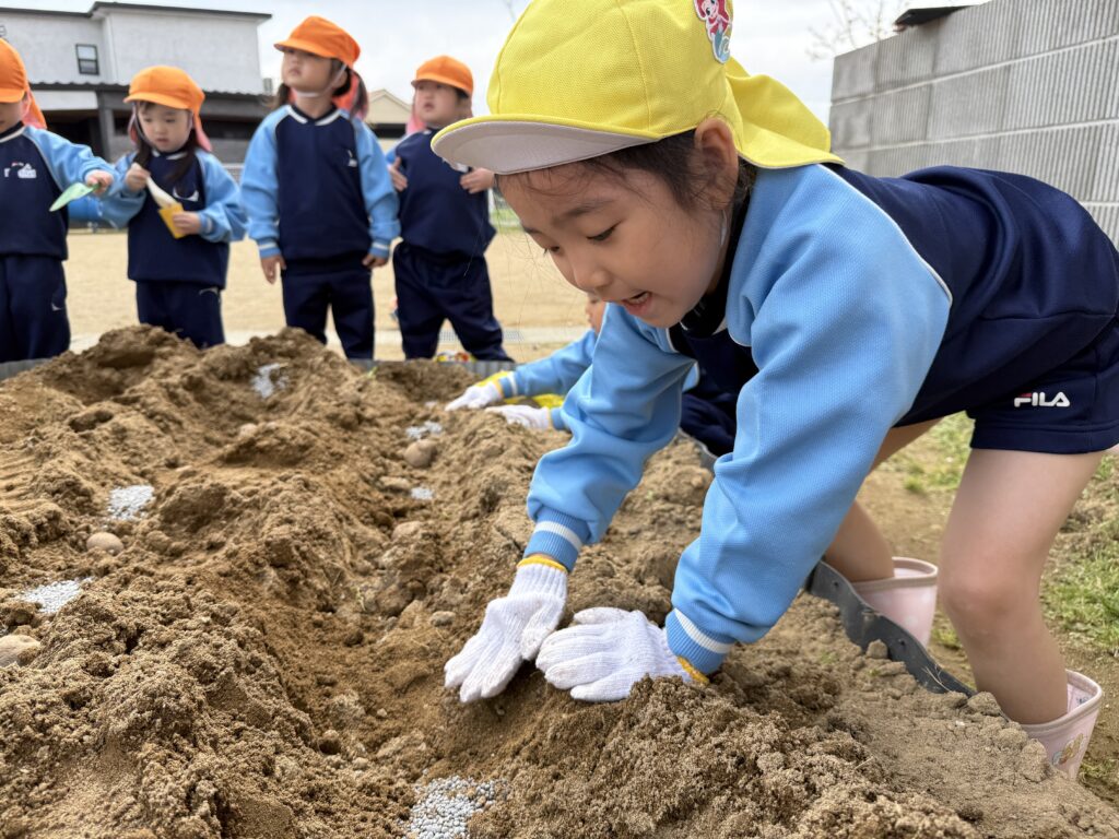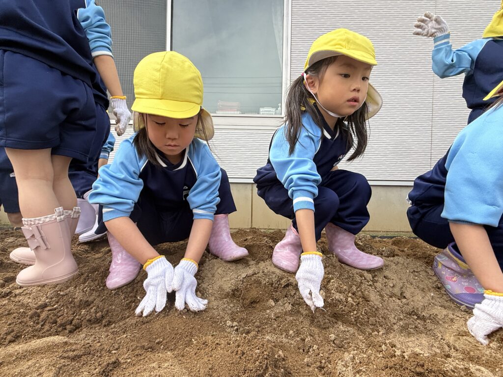 「おいもがしっかり隠れるように、たくさん土をのせなきゃ!」