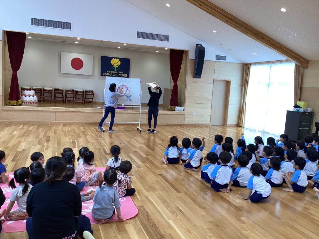 2023.06.19 活動報告 虫歯予防デー 虫歯予防デー。 つどいが開かれ、歯についての話を聞きました。 最初は正しい歯の磨き方を教えてもらいました。 次は歯についての○×クイズ。 正解すると「やったー!」と大喜びしていました。 お口の中のお話やお歌・クイズなどを通して口や歯の役割や虫歯予防の大切さを知ることができましたよ。 いつまでも きれいなピカピカの歯でいられるように毎日丁寧に磨こうね!歯を大事にしよう!
