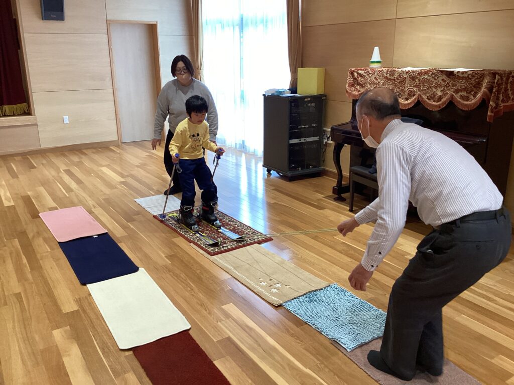 遊戯室でのスキーごっこでの転び方やひざを曲げて目線は前方向などの学びが実体験にしっかりと繋がっていることに感心しながら見ていました。